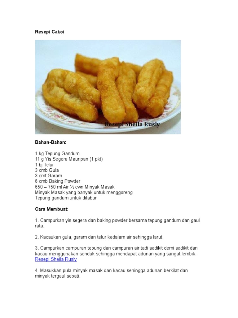 Resepi Kampung Resepi Cakoi Kampung Bahan Bahan 1kg Tepung Gandum 1 Paket Yis Kering 1 Cawan Gula Pasir 3 Cawan Air Sedikit Garam 2 Biji Telur Satukan Cawan Minyak Mazola